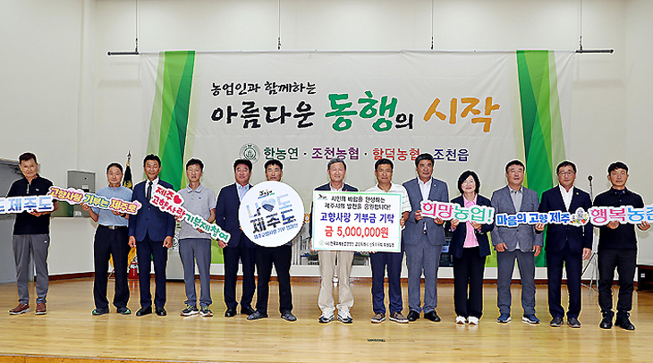 (사)한국후계농업경영인 제주시조천읍회는 지난달 27일 '농업 경쟁력 강화를 위한 워크숍 및 제18회 혼모심 대회'에서 (사)한국후계농업경영인 고양특례시 신도지구회와 고향사랑기부금을 상호 기탁했다.