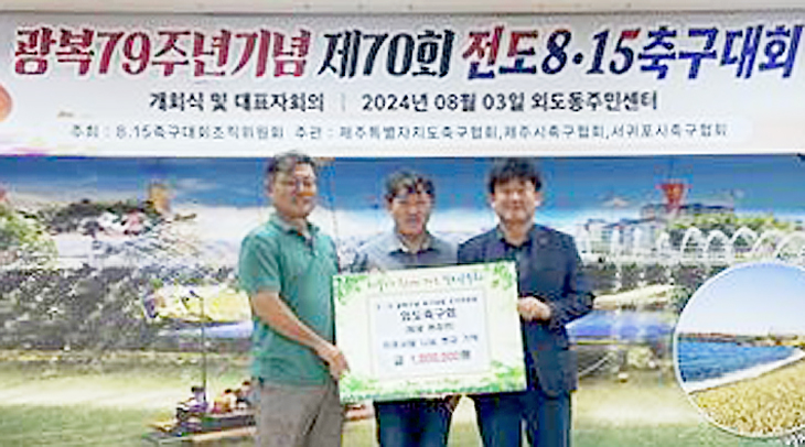 8·15축구대회 조직위원회 외도축구회(위원장 하경언)는 지난 3일 광복절 기념 제70회 8·15축구대회 개회식에서 100만원의 후원금을 사랑의 열매에 기탁했다.