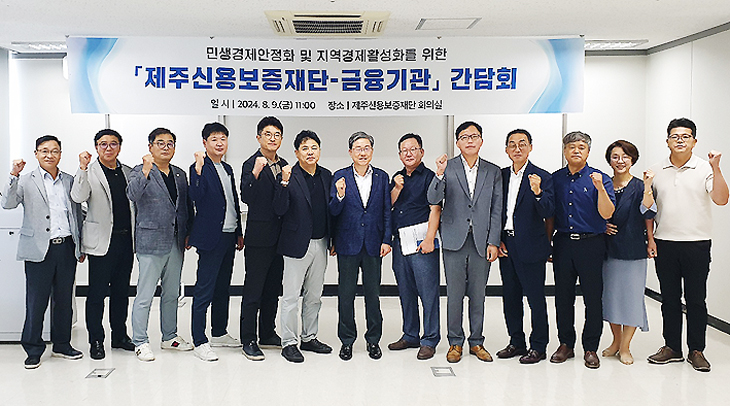 제주신용보증재단(이사장 김광서)은 지난 9일 재단 회의실에서 도내 8개 금융기관(국민은행, 기업은행, 농협은행, 수협은행, 신한은행, 우리은행, 제주은행, 하나은행) 책임자들과 민생경제 안정화와 지역경제 활성화를 위한 간담회를 개최했다.