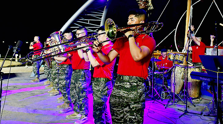 해병대 제9여단은 지난 9일 제주시 이호테우해수욕장에서 제주도민과 관광객들을 대상으로 군악대 버스킹 공연을 펼쳤다.