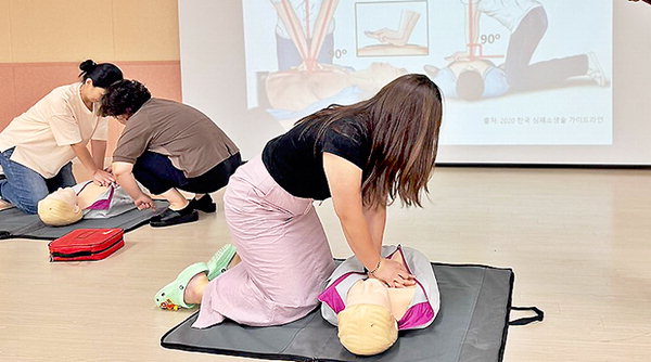 [한라일보] 서귀포시니어클럽(관장 박재천)은 지난 7일 서귀포시노인복지지원센터 3층 강당에서 이음일자리 참여자와 직원을 대상으로 심폐소생술과 AED(자동제세동기) 사용법 등 응급 처치 교육을 실시했다.