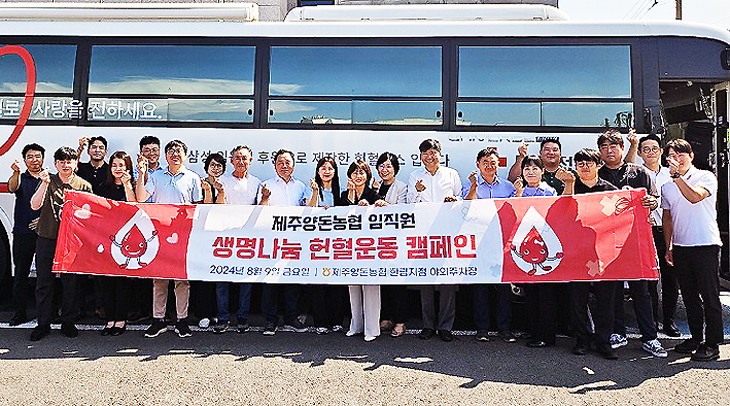 제주양돈농협(조합장 고권진)은 지난 9일 대한적십자사와 합동으로 한림지점 야외주차장에서 임직원, 지점 내방 고객들과 함께 사랑의 헌혈운동에 참여했다. 이번 헌혈은 도내 혈액 보유량이 감소함에 따라 혈액수급 안정을 위해 동참했다.