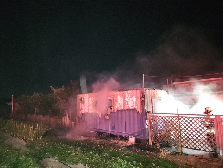 13일 제주시 애월읍 고성리에서 발생한 창고 화재. 도 소방안전본부 제공
