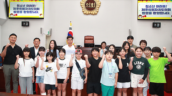 제주특별자치도의회는 지난 14일 도의회 본회의장에서 동홍동 어린이주민자치위원, 주민자치위원 등 18명이 참여한 가운데 청소년 모의의회 의정체험을 진행했다. 참가자들은 1일 도의원 역할을 맡아 기후 문제, 학생 예절교육, 어린이 놀 공간의 불평등 등에 대한 개선 방안을 제시했다.
