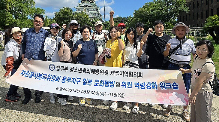법무부 청소년범죄예방위원 제주지역협의회(회장 고영두) 자원봉사분과위원회 동부지구(회장 백희순)는 지난 8~11일 3박 4일간 지구위원 20여 명이 참여한 가운데 일본 오사카 지역의 문화탐방 및 위원 역량 강화 워크숍을 개최했다.