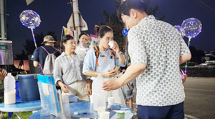 솔동산어멍쉰다리모임(대표 김종현)은 지난 16~17일 '2024 서귀포 달빛 하영걷길' 행사에 맞춰 서귀진지를 찾은 관광객과 도민들에게 제주의 토속 발효 음료인 '쉰다리' 무료 시음 봉사를 실시했다.