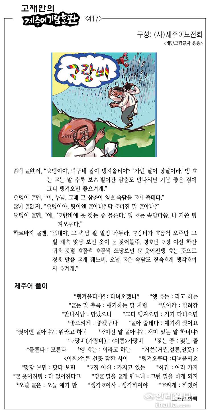 [고재만의 제주어기림혼판] 제주어 풀이(417)