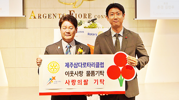 제주삼다로타리클럽(회장 김민우)은 최근 사랑의 쌀 580㎏을 제주사회복지공동모금회(회장 강지언)에 기탁했다.