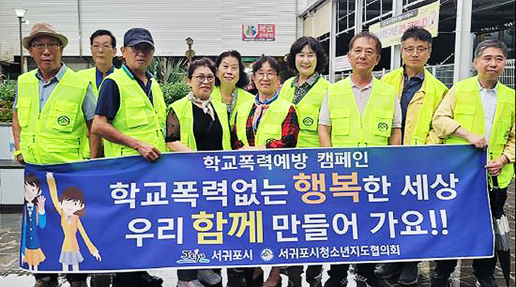 서귀포시 중앙동청소년지도협의회(회장 박민종)는 지난 20일 회원 10여 명이 참여한 가운데 학교 주변과 청소년 유해업소 밀집 지역을 중심으로 학교폭력을 예방하고 청소년을 보호하기 위한 캠페인을 실시했다.