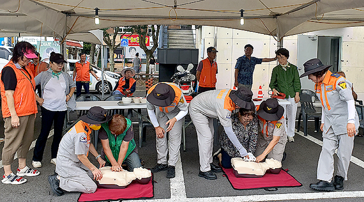 제주동부소방서 성산여성의용소방대(대장 홍재영)는 최근 열린 '성산일출의 별밤 축제'에서 축제를 방문한 관광객과 지역주민 등을 대상으로 심폐소생술과 자동제세동기(AED) 사용법 등 안전교육을 실시했다.