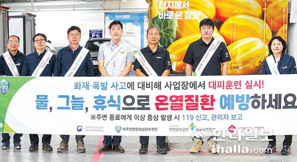[한라일보]안전보건공단 제주지역본부(본부장 박상복)와 고용노동부 광주청 제주산재예방지도팀은 지난 27일 롯데마트 제주점에서 온열질환 예방 등을 위한 '안전일터 조성의 날' 행사를 개최했다.