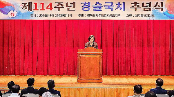 [한라일보] 광복회제주특별자치도지부(지부장 강혜선)는 29일 정부제주지방합동청사에서 이상봉 제주자치도의회 의장, 최성유 부교육감, 정길재 제주보훈청장, 정영숙 제주호국원장과 광복회원 150여 명이 참석한 가운데 제114주년 경술국치 추념식을 거행했다.