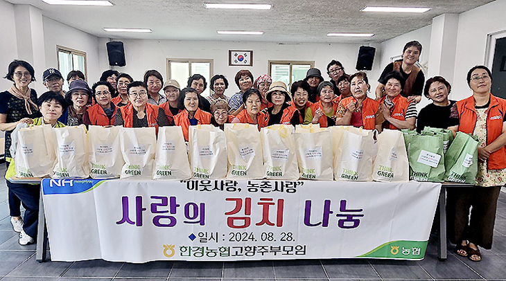 한경농협(조합장 김군진) 여성조직인 고향주부모임(회장 박영자)은 지난 28일 회원 30여 명이 참여한 가운데 500만원 상당의 김치를 담가 지역 내 다문화가정과 취약계층 100여 가구에 전달하는 '사랑의 김치 나눔 행사'를 실시했다.