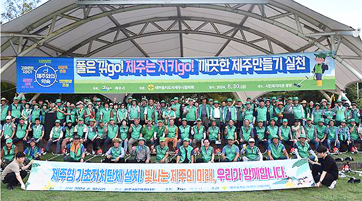 새마을지도자제주시협의회(회장 고성영)는 지난달 30일 시민복지타운광장 야외무대에서 김완근 제주시장, 변봉남 도협의회장, 유철수 제주시새마을회장, 강길선 제주시새마을부녀회장 등 250여 명이 참석한 가운데 '풀은 깍go! 제주는 지키go! 깨끗한 제주만들기 실천' 행사를 개최했다.