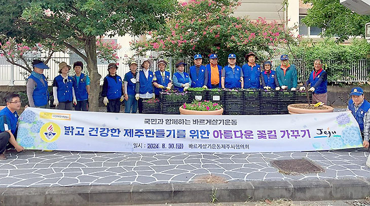 제주시 이도2동 바르게살기운동위원회(위원장 이익중)는 지난달 30일 제주중앙여자고등학교 정문 앞에서 밝고 건강한 제주 만들기를 위한 꽃 심기 봉사를 벌였다.