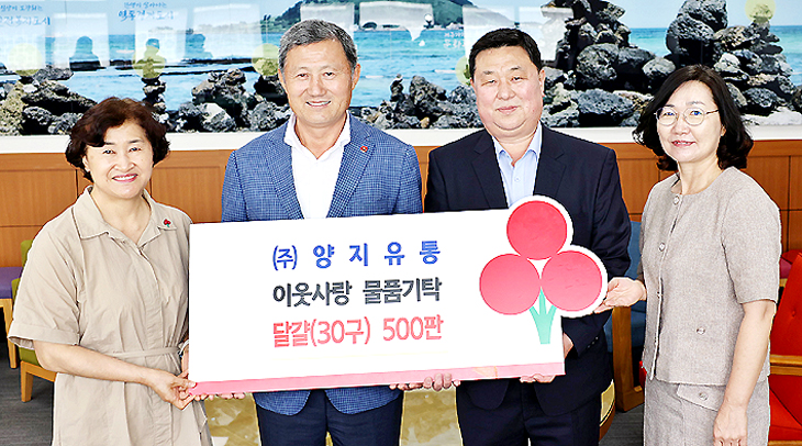 제주시는 2일 (주)양지유통(대표 강승협)으로부터 계란 500판을 기탁받았다. 이번 물품은 다가오는 추석을 맞아 지역 내 사회복지시설에 전달해 입소자들이 명절을 조금이라도 풍요롭게 보낼 수 있도록 지원할 예정이다. 양지유통은 2020년부터 물품 기부에 참여하며 나눔 문화 확산에 기여하고 있다.