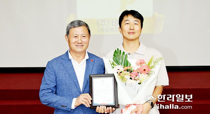 김완근 제주시장은 지난 2일 시청 별관 회의실에서 열린 정례 직원 조회에서 '튼튼 새싹 반찬 더하기 프로젝트' 업무 협약을 통해 아동 후원 등 사회에 공헌한 (주)네오플에 감사패를 수여했다.