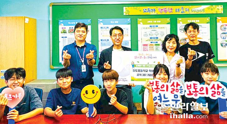 제주시 일도초등학교(교장 김은희)는 지난달 31일 '2024 함께 하는 번개장터' 수익금 38만7760원을 탐라장애인종합복지관(관장 고현수)에 기부했다.