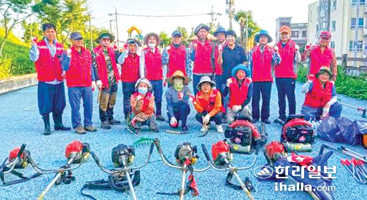 제주시 아라동 통장협의회(회장 오한규)는 지난달 31일 회원 23명이 참여한 가운데 아라동 110호 어린이공원 인근 풀베기 등 환경 정비를 실시했다.