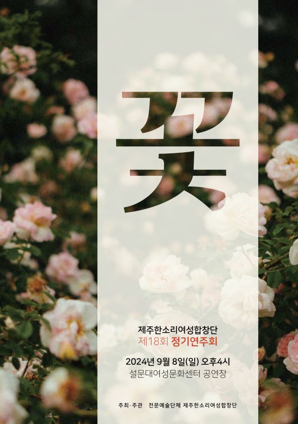 [한라일보] 전문예술단체 제주한소리여성합창단이 사랑이 가득한 '꽃세상'을 음악으로 선사하는 시간을 마련했다. 삶 속에서 각자의 몫을 해내느라 애써온 도민들에게 "웃음꽃이 활짝 피는 일들이 늘 함께하면 좋겠다는 생각으로 준비"한 연주회를 오는 8일 오후 4시 설문대여성문화센터 공연장에서 펼쳐보인다. '꽃'을 주제로 한 합창단의 열여덟 번째 정기연주회다.