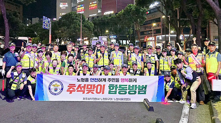 제주서부경찰서 노형지구대(대장 김상훈)와 서부경찰서 자율방범연합대(대장 양진영), 노형자율방범대(대장 양경택)는 지난 5일 '노형을 안전하게 주민을 행복하게'라는 슬로건을 내걸고 노형동 일원에서 야간 합동순찰을 실시했다.