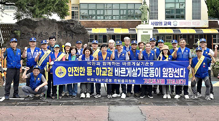 바르게살기한림읍위원회(위원장 이창하)는 지난 2일 회원 30여 명이 참여한 가운데 제주시 한림초등학교 주변에서 등하굣길 교통질서 지키기 캠페인을 실시했다.