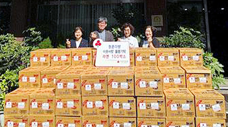 제주시 청춘다방(대표 고광민)은 지난 4일 연동 지역 내 소외된 이웃들에게 전달해 달라며 연동주민센터(동장 원훈철)와 연동지역사회보장협의체(위원장 신애복)에 라면 100박스를 기탁했다.