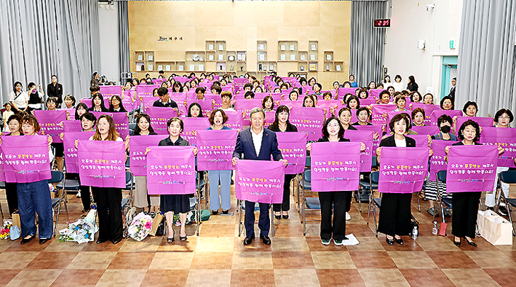 서귀포시는 이보다 앞서 지난 2일 시청 문화강좌실에서 '함께 일하고 함께 돌보는 양성평등 서귀포시'라는 주제로 양성평등주간 기념행사를 열었다. 서귀포시여성단체협의회(회장 허숙희)와 공동 주관한 기념식에서는 해바라기영천어울림소리의 식전 기타 공연, 유공자 10명에 대한 표창패 수여, 한국양성평등진흥교육원 전문 강사인 김연순 씨 초청 강연 등이 마련됐다.