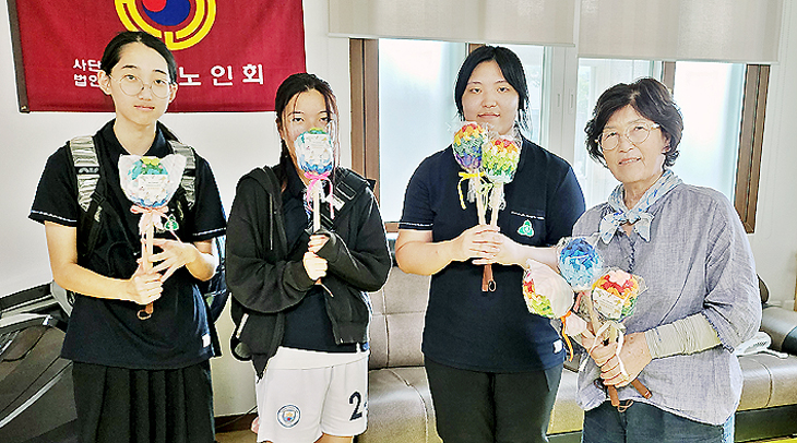 대정청소년수련관 공예 동아리인 '꽃보다공예' 회원 20여 명은 추석을 맞아 지난 10일 서귀포시 대정읍 하모3리, 동일1리 경로당을 방문해 동아리 회원들이 직접 만든 친환경 편백 안마봉 60여 개를 전달했다.