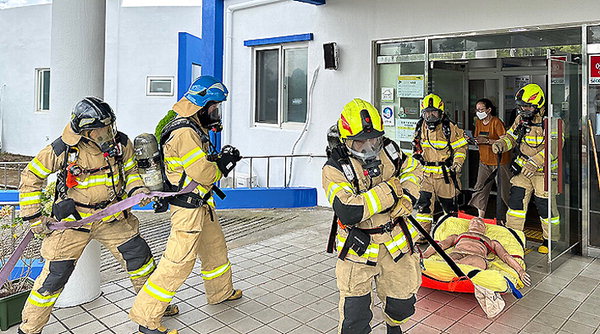 [한라일보] 동부소방서(서장 김승용)는 지난 11일 미타요양원에서 자위소방대 합동 소방훈련을 실시했다.