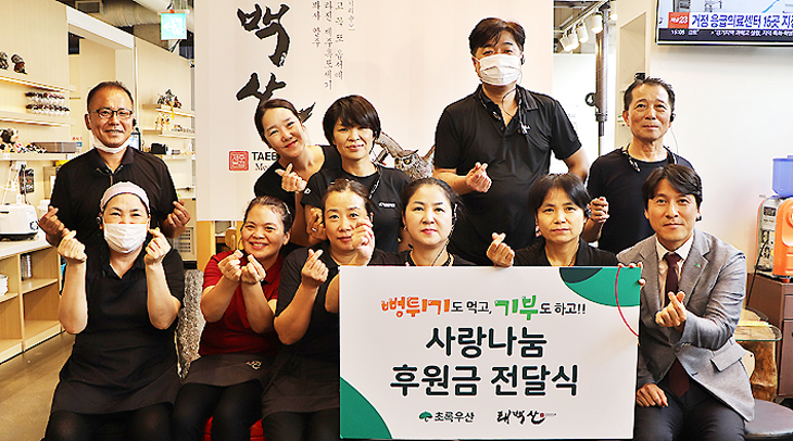 제주시 이호2동 소재 태백산 제주본점(대표 이승재·이전희)은 지난 12일 초록우산 제주지역본부(본부장 변정근)에 사랑나눔 후원금 77만여원을 전달했다.