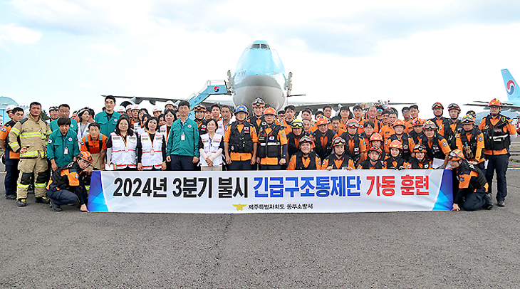 제주동부소방서(서장 김승용)는 지난 13일 대한항공 운항훈련원에서 긴급구조통제단 가동 훈련을 실시했다.