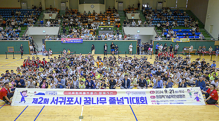 서귀포시, 서귀포시교육지원청, 재단법인 서귀포시교육발전기금 등 3개 기관은 지난 21일 서귀포올림픽기념국민생활체육관에서 미취학 아동, 초등학생 등 어린이와 가족 500여 명이 참가한 가운데 '제2회 서귀포시 꿈나무 줄넘기 대회'를 개최했다.