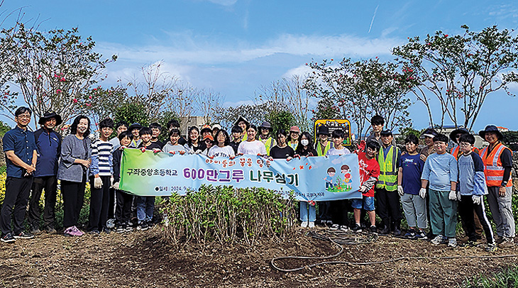 구좌중앙초등학교(교장 장은영)는 25일 학교숲 조성에 따라 학생들과 함께 '탄소중립 600만 그루 나무심기 행사'를 진행했다.