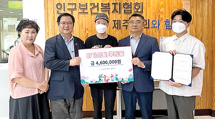 인구보건복지협회 제주지회(회장 이용탁)는 지난 24일 지회 회의실에서 제주특별자치도 백혈병소아암협회(회장 손태일)의 추천을 받은 악성흑색종 소아암 질환을 앓고 있는 임 모군(남, 14세)에게 아가사랑후원금을 460만원을 전달했다.