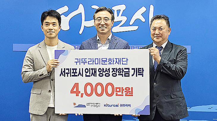 귀뚜라미그룹(회장 최진민)은 지난 24일 서귀포시청에서 지역인재 장학금 기탁식을 하고, 서귀포시에 장학금 4000만원을 전달했다.