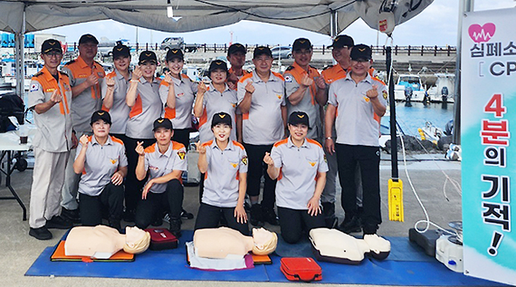제주시 화북119센터(센터장 강진)와 화북의용소방대(대장 강재천, 조은숙)는 지난 28~29일 '제3회 화북, 포구문화제'에서 심폐소생술 댄스 공연·심폐소생술 체험 부스 운영을 실시했다.