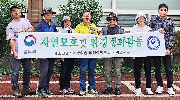 법무부 청소년범죄예방위원 제주지역협의회(회장 고영두) 범죄예방분과위원회 서귀포지구(회장 김형준)는 지난달 29일 서귀포시 소재 붉은오름 자연휴양림 일대에서 서귀포지구 위원 10여 명이 참석한 가운데 오름 일대 주변 환경정화 봉사활동을 했다.