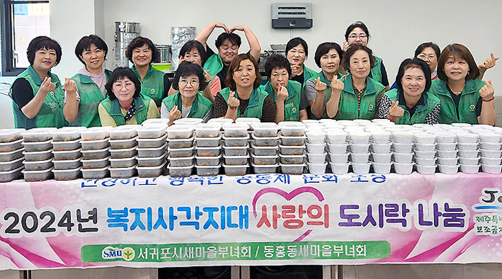 서귀포시 동홍동새마을부녀회(회장 김행미)는 지난달 28일 서귀포삼다종합사회복지관에서 복지사각지대에 있는 이웃을 위해 위해 사랑의 도시락 나눔 행사를 했다.