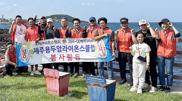 [한라일보] 국제라이온스협회 354-G지구 제주용두암라이온스클럽(회장 강동우)은 지난달 29일 용두암 일대에서 회원 15명이 참석한 가운데 각종 해양쓰레기 수거 봉사활동을 실시했다.