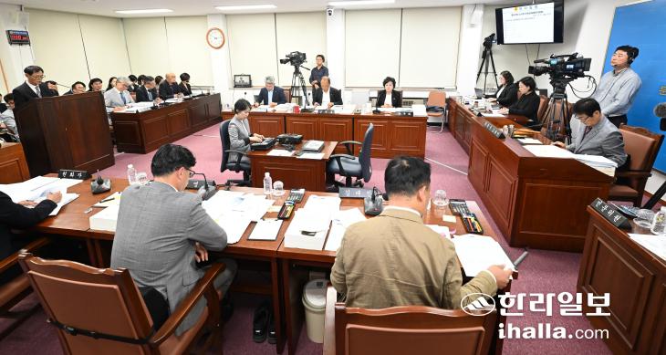 제주도의회 문화관광체육위원회가 14일 제주도 문화체육교육국 등에 대한 행정사무감사를 진행하고 있다. 제주도의회 제공
