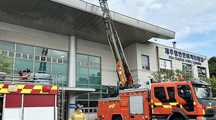 제주소방서(서장 양영석)는 지난 10일 제주항연안여객터미널에서 자위소방대 합동 소방훈련을 진행했다.