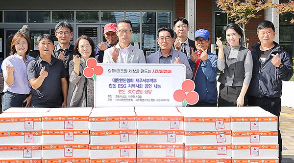 [한라일보] 대한한돈협회 제주서부지부(지부장 김진삼)는 지난 11일 제주시한림읍사무소에서 300만원 상당의 한돈을 제주사회복지공동모금회(회장 강지언)에 기탁했다.