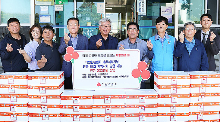 대한한돈협회 제주서부지부(지부장 김진삼)는 지난 11일 제주시 한경면사무소에서 200만원 상당의 한돈을 제주사회복지공동모금회(회장 강지언)에 기탁했다.