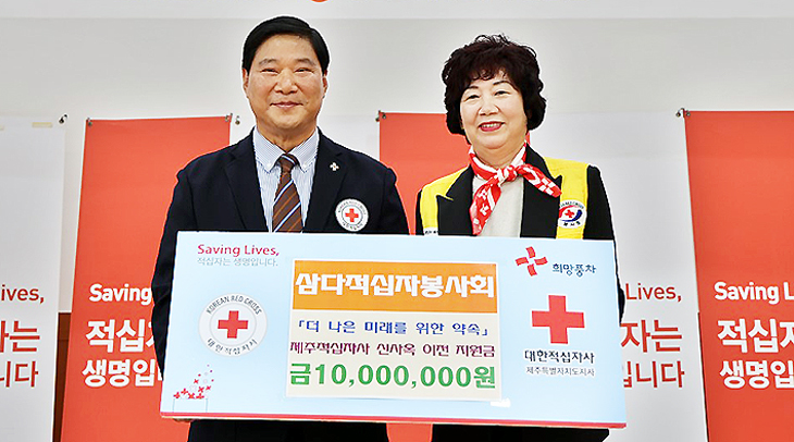 이번 성금은 삼다봉사회 봉사원들의 자발적인 모금을 통해 마련됐다. 제주적십자사는 지사 신사옥 및 제2의 인재개발원 리모델링에 성금을 사용할 예정이다.