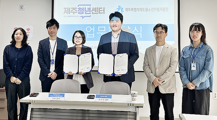제주특별자치도청소년자립지원관(관장 강은숙)과 제주청년센터(센터장 강태훈)는 지난 16일 도내 자립준비청소년들의 경제적, 심리적 자립을 도모하기 위한 업무협약을 체결했다.