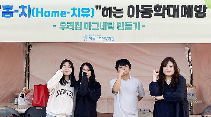 제주도아동보호전문기관(관장 정원철) 소속 대학생봉사단 I-P.O(회장 양지선)는 지난 12일 제주탑동광장에서 열린 '2024 정신건강박람회' 행사에서 '홈-치(Home-치유)하는 아동학대예방 캠페인'을 진행했다.