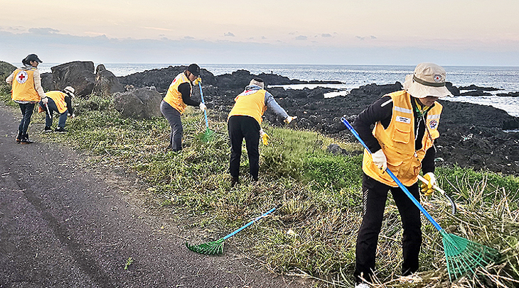 대정적십자봉사회(회장 문복래)는 지난 14일 서귀포시 대정읍 영락리, 일과리 해안가 주변에서 환경 정비를 실시했다.