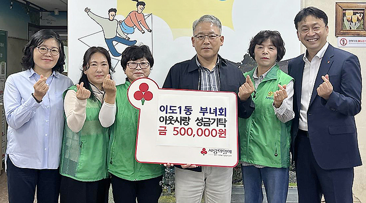 제주시 이도1동새마을부녀회(회장 고경숙)는 지난 15일 이도1동주민센터(동장 유영택)를 방문해 바자회 수익금 50만원을 지정 기탁했다.