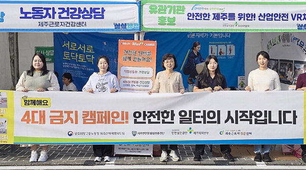 [한라일보] 고용노동부 광주지방고용노동청(청장 이성룡)과 안전보건공단 제주지역본부(본부장 박상복)는 지난 26일 노동자 한마당축제 심심캠프에서 근로자와 가족들을 대상으로 VR안전체험 및 '4대 금지 캠페인'을 실시했다.